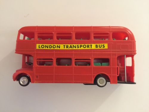 Title (ebay affiliate link): Vintage Friction Drive Double Decker Plastic London Bus 9" Made In Hong Kong