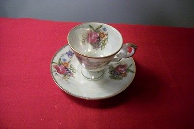 Antique Opaque Tea Cup and Saucer with Fuchsia Roses