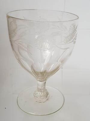 Beautiful Early 19th Cent. Georgian Wine Glass with Etched Floral Pattern