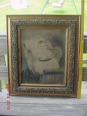 HUGE 19th c Antique Victorian Gilt Gilded Wood & Plaster Framed Baby Wicker Pram