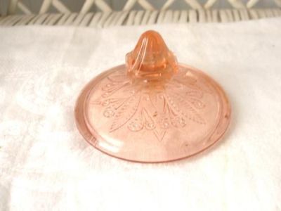 Pink Depression Glass Sugar Lid in Adam Pattern !