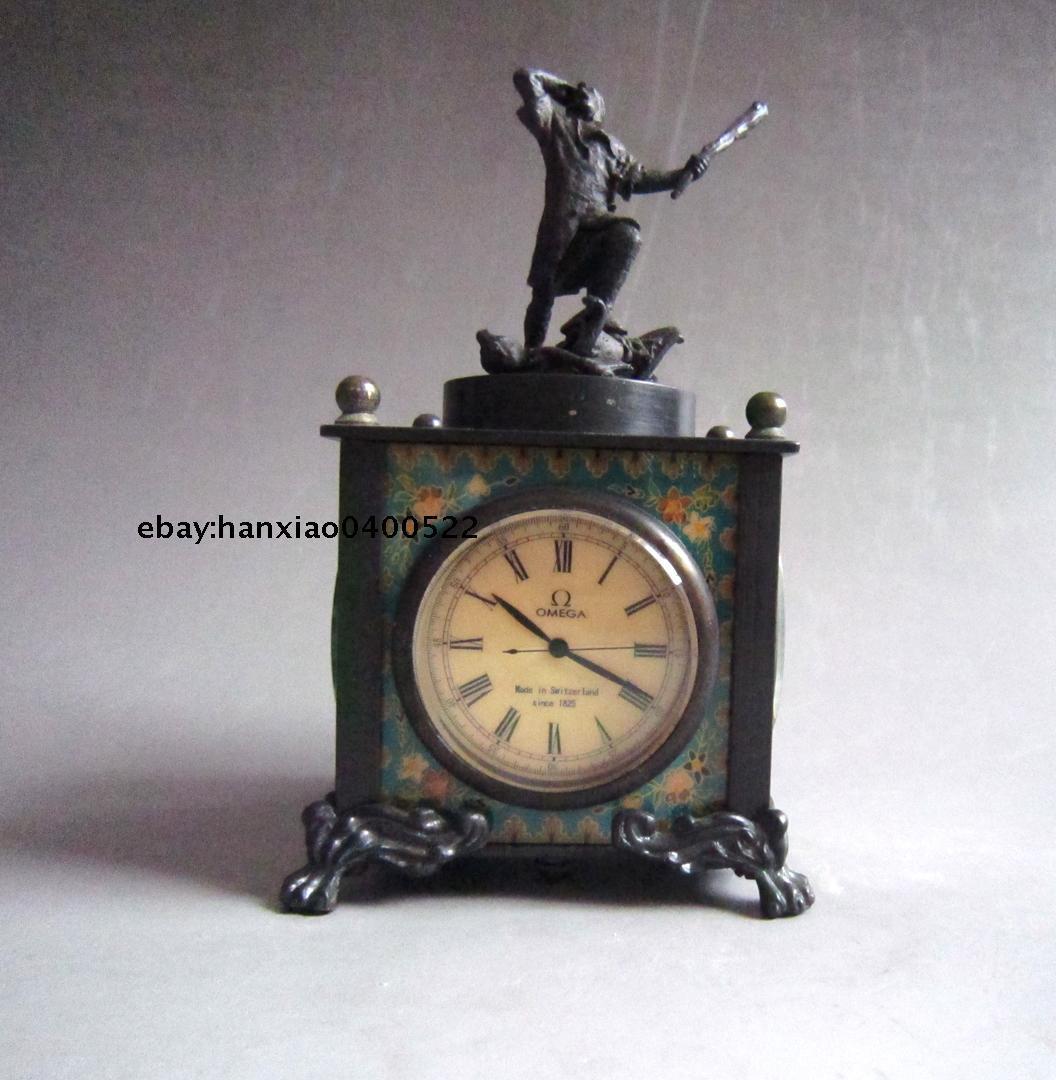Old Peiking Bronze Handwork person Mechanical Table Clock Statue