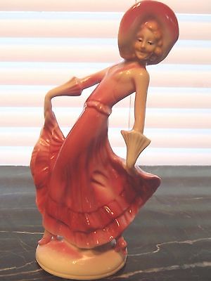 Beautiful Fine Porcelain Germany Dancing Lady Woman In Pink Flowing Gown Dress