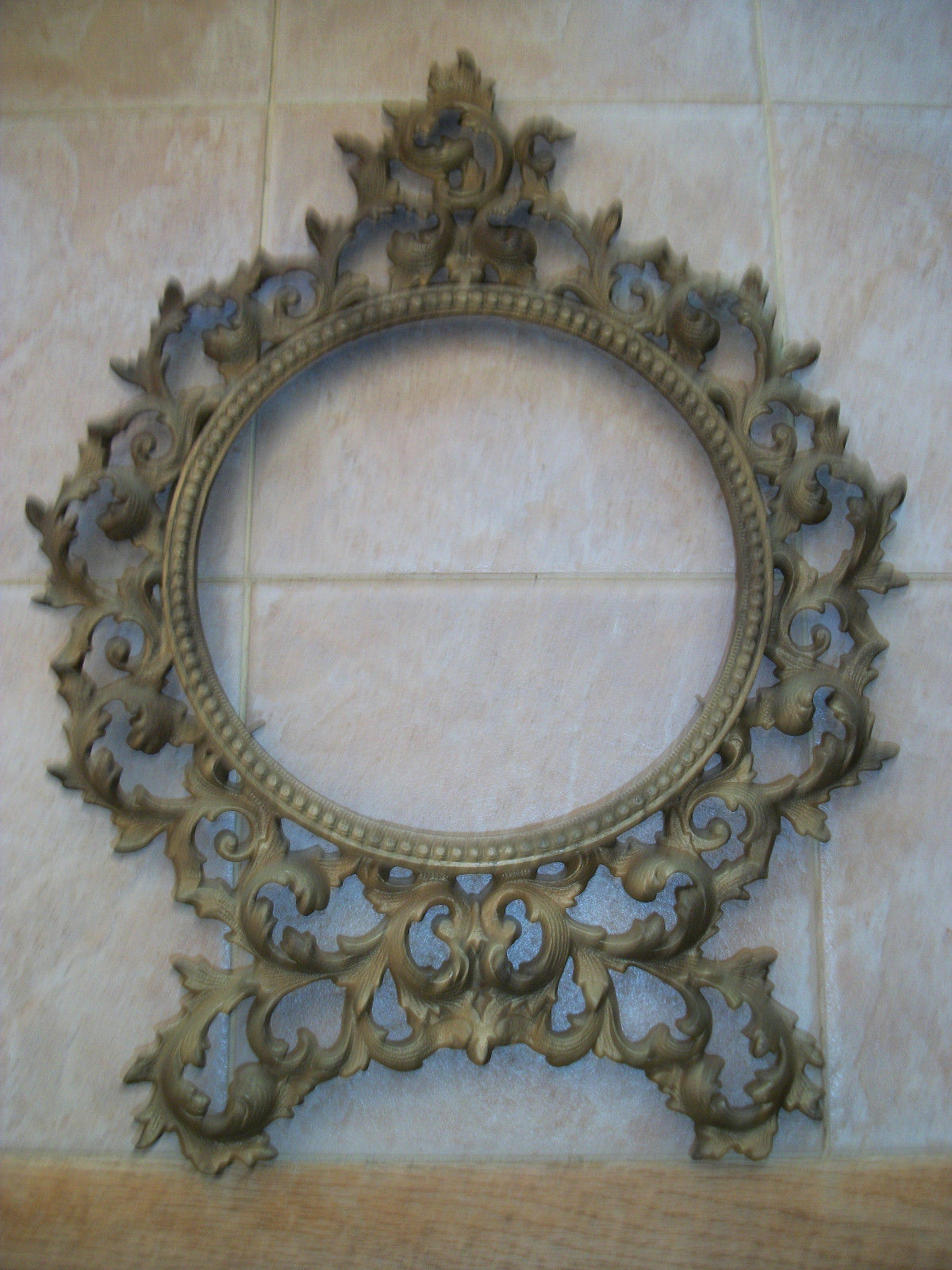 Vintage Antique Ornate Gold Colored Cast Iron Round Picture Frame