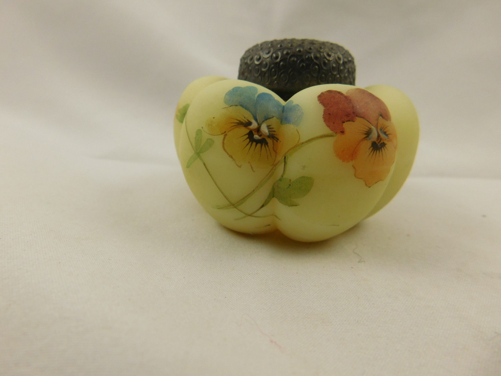 Victorian Mt. Washington Glass Pansy Dec Undeveloped Burmese Tomato Salt Shaker.