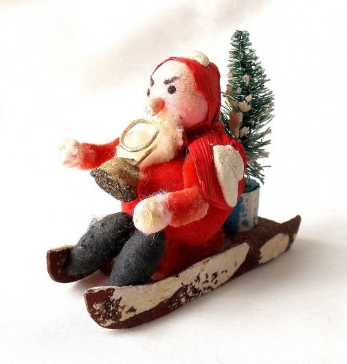 Title (ebay affiliate link): Antique Spun Cotton & Chenille Santa on Sled Bottle Brush Tree Vtg Germany ??