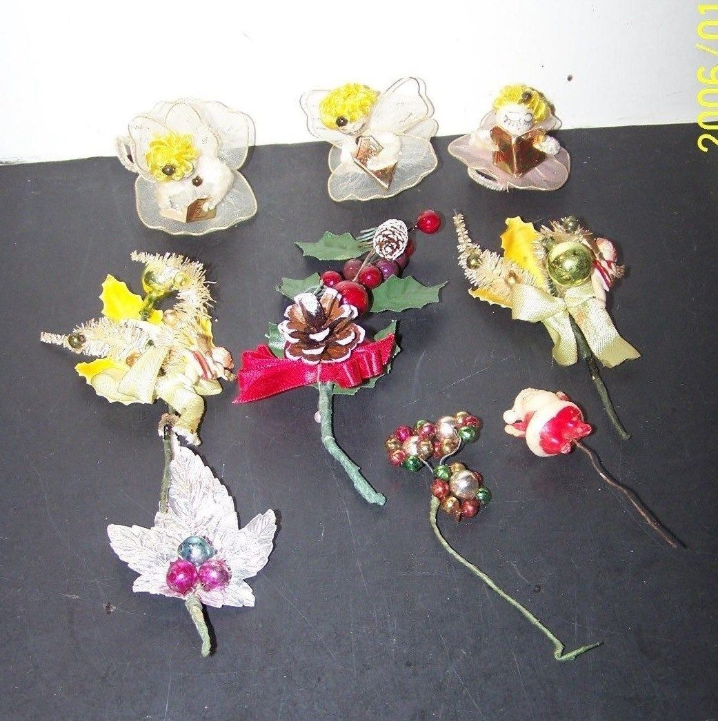 Title (ebay affiliate link): 9 ASST. CHRISTMAS RELATED PICKS FOR FLOWER/CORSAGE/WREATH ARRANGEMENTS