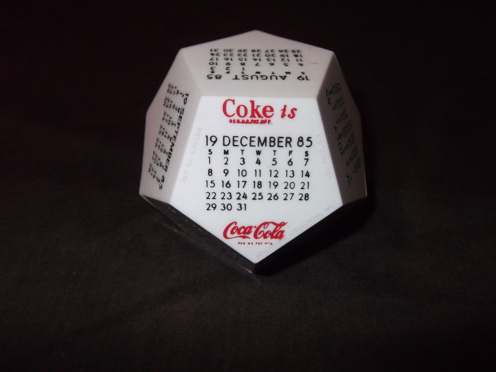 Coca Cola 1985 Calendar 12 Month Desk Paperweight Plastic Vintage "Coke Is.."