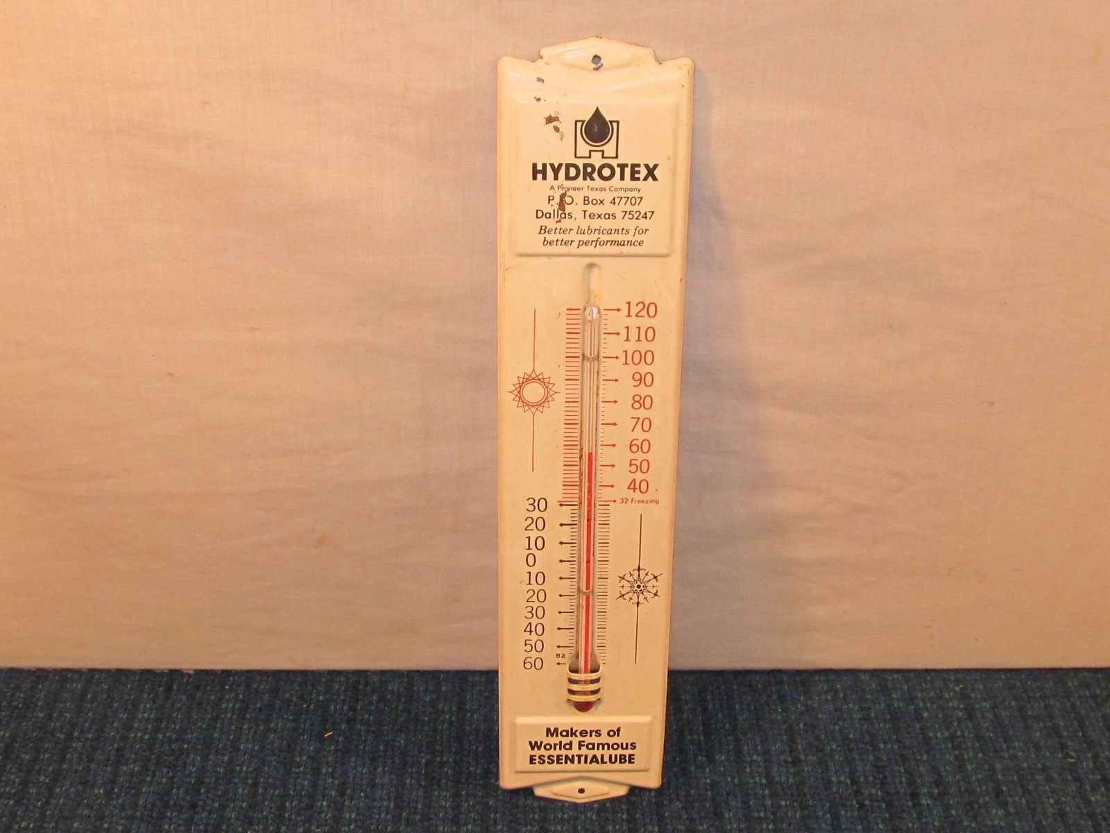 Title (ebay affiliate link): Vintage HYDROTEX Gas Station Oil Advertising Metal Thermometer Sign Dallas Texas