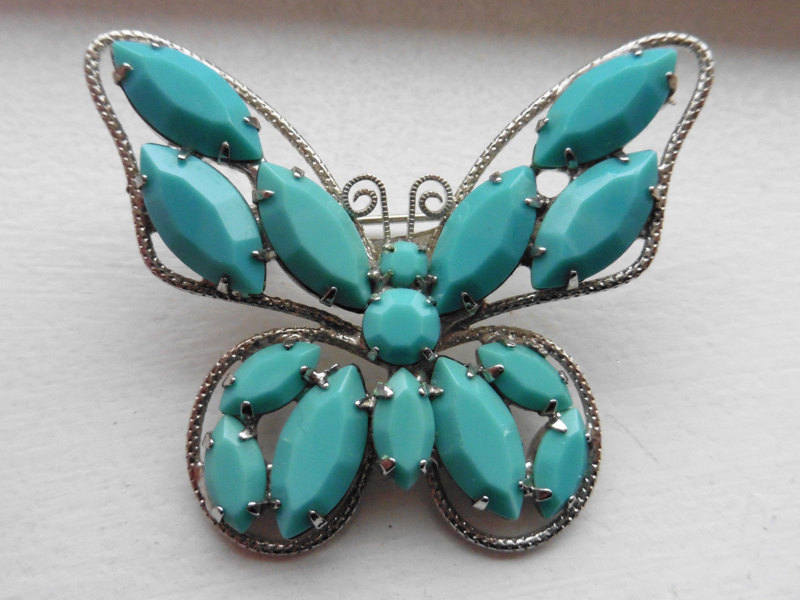 VINTAGE JULIANA BLUE MILK GLASS BUTTERFLY BROOCH