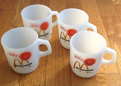 Title (ebay affiliate link): 4 VTG FIRE KING MCDONALDS COFFEE MUGS "GOOD MORNING" MILK GLASS ANCHOR HOCKING