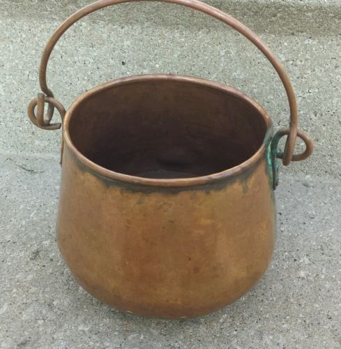 Title (ebay affiliate link): Small Antique Cauldron Copper Apple Butter Handcrafted Kettle / Pot / Handle