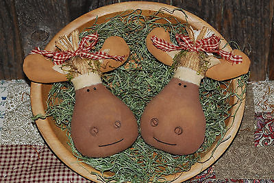 Primitive Christmas Moose Tucks Brown Bowl Fillers Ornies SET OF TWO