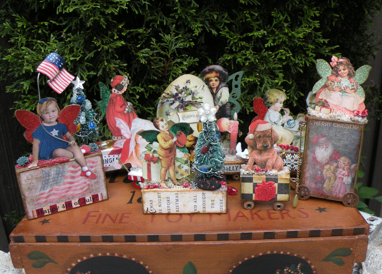 SIX One of a Kind Mixed Media Collage Artist Blocks Christmas Trees Holidays