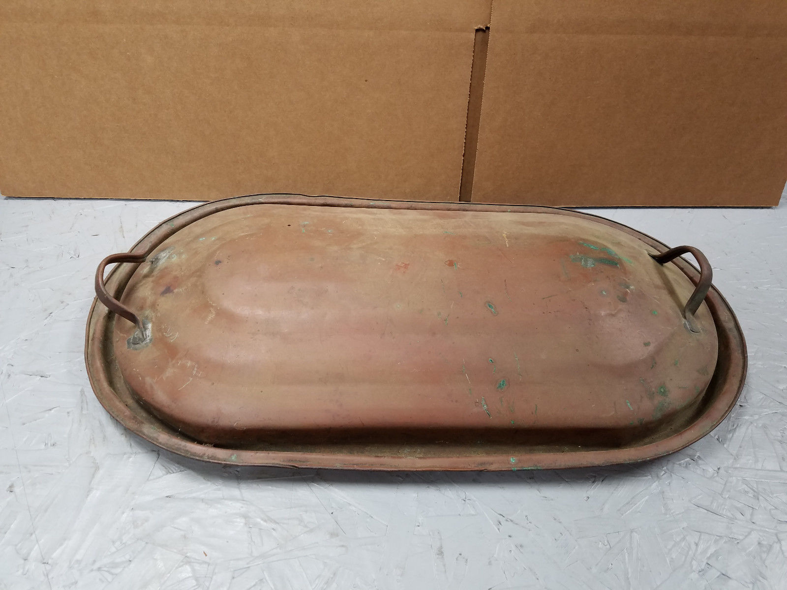 Title (ebay affiliate link): Antique COPPER~BOILER LID~Dual Handles~Oval~Wash Tub~Decor~USA~ "LID ONLY "