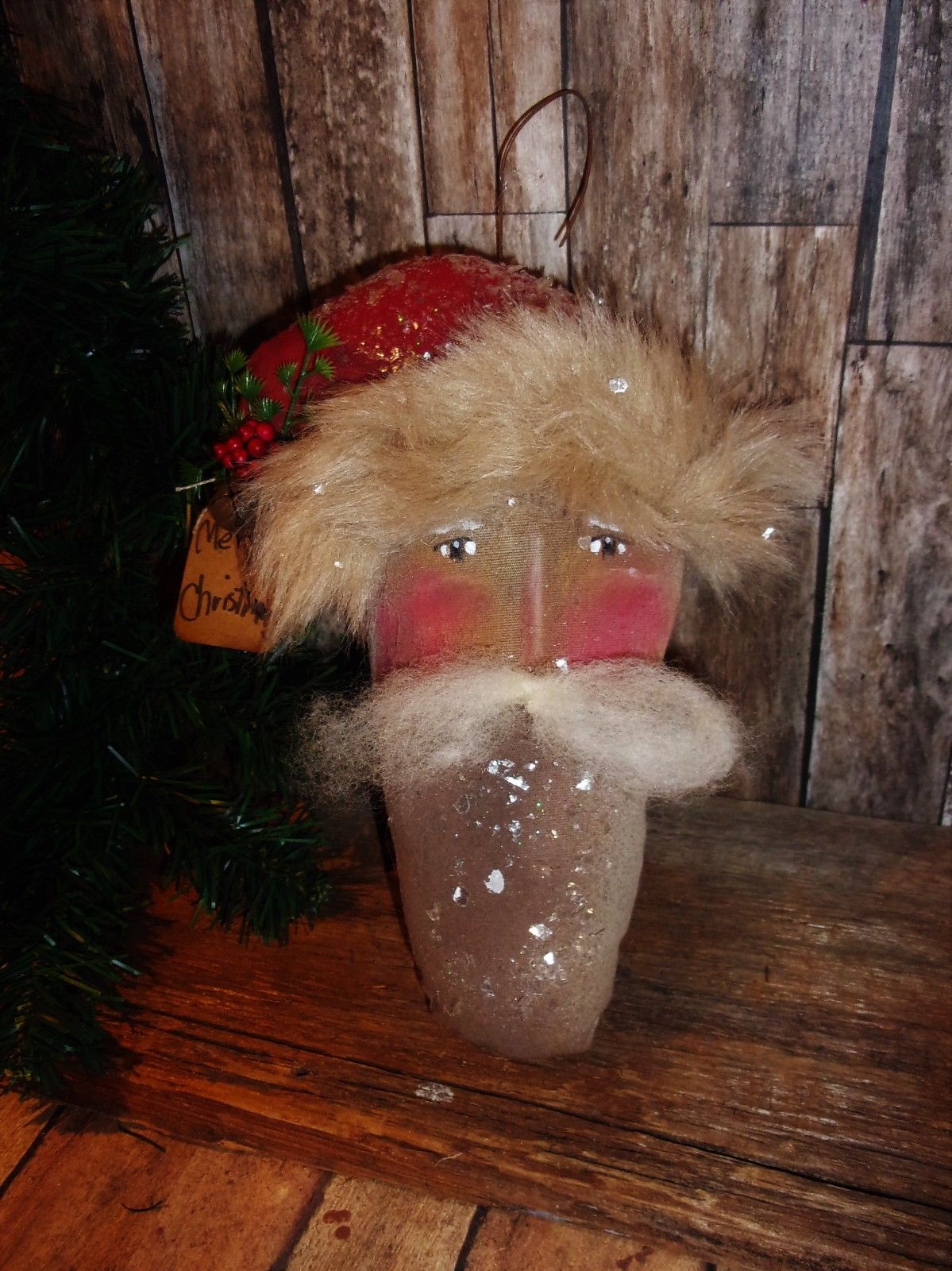 ** Primitive CHRISTMAS SANTA ORNIE SIZE HEAD 9x6in Rusty doll **