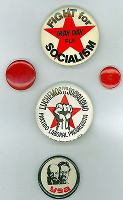 5 Vintage 1970's 80s Socialist Political Campaign Pinback Buttons Fight May Day