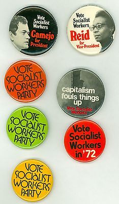 7 Vintage 1972 Socialist Workers Party Political Camejo Pinback Buttons