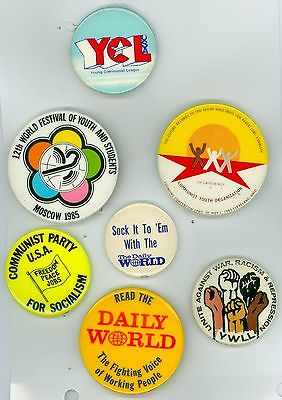 Title (ebay affiliate link): 7 Vintage 1970s-80's Communist Party USA Political Campaign Pinback Buttons YCL