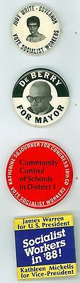 4 Vintage 1960s-88 Socialist Workers Party New York Political Pinback Buttons