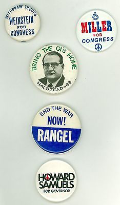 Title (ebay affiliate link): 5 Vintage 1960-70's Anti-Vietnam War Candidates Political Pinback Buttons Rangel