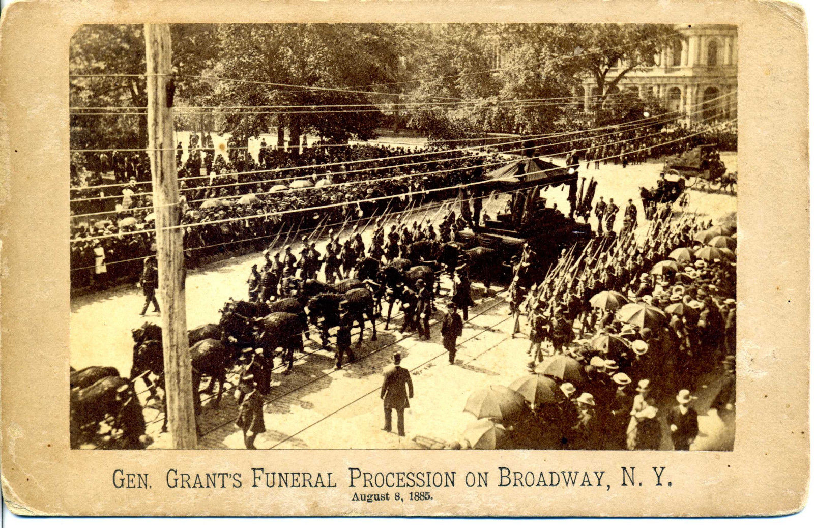 CIVIL WAR GENERAL & PRESIDENT ULYSSES S. GRANT FUNERAL PROCESSION N.Y 1885 PHOTO