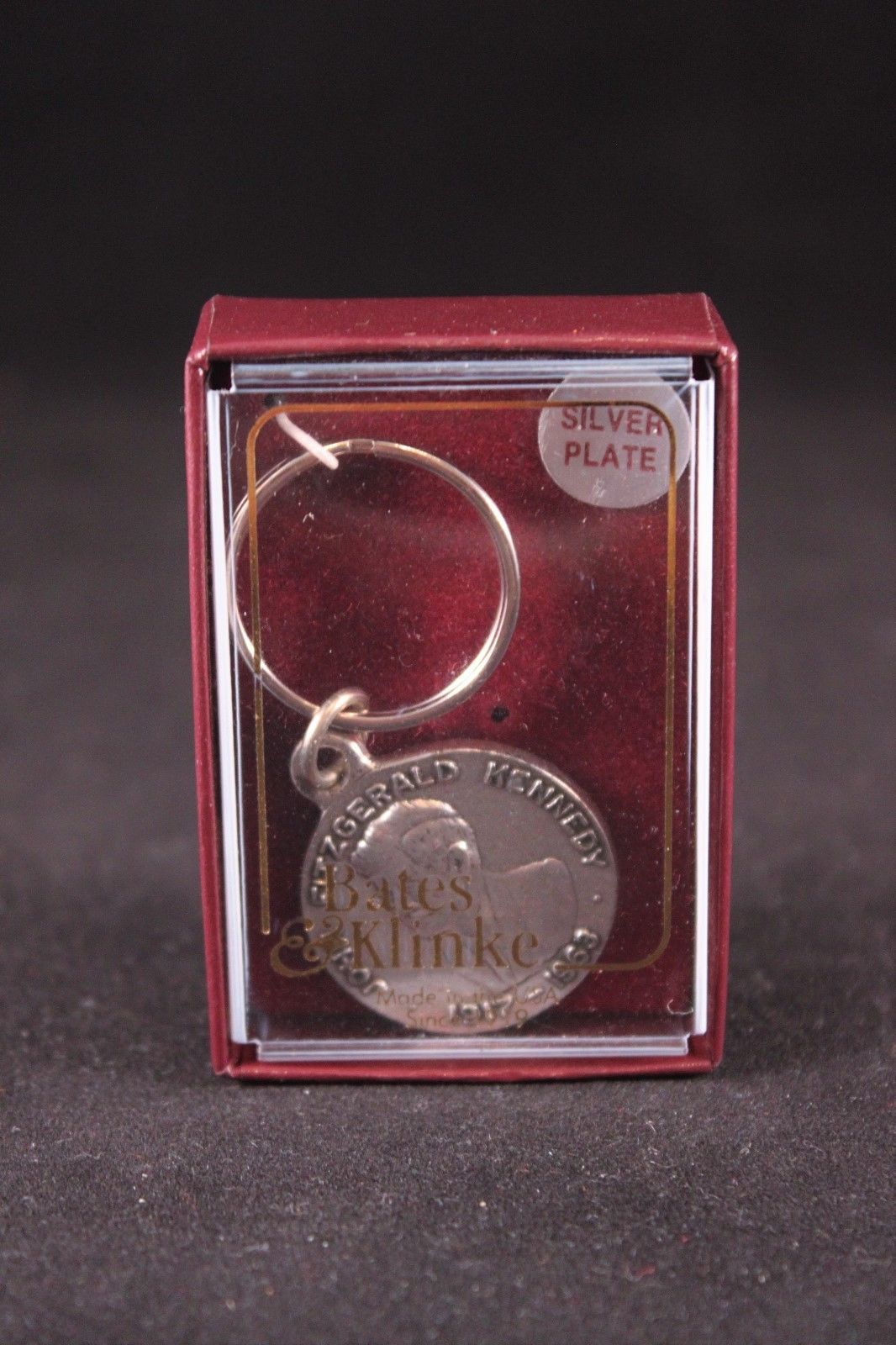 Title (ebay affiliate link): Vintage Bates & Klinke John F. Kennedy Silver Plate Keychain. New in Box.