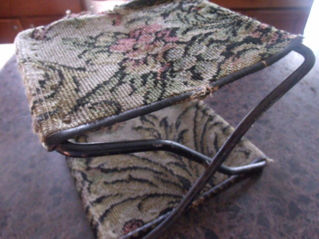 Title (ebay affiliate link): RARE Antique Folding Buggy Stool Childs Seat Needlepoint New I.D. Seat Pat 1895