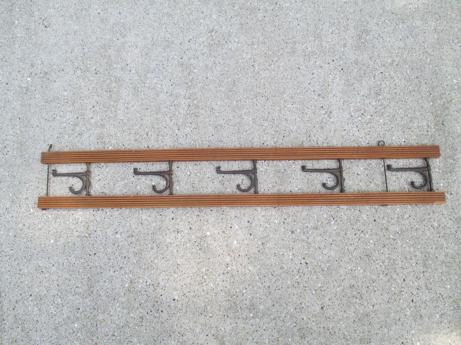 Antique, Coat Rack, Oak Wood, with Five Iron Hooks, 28 inches Long, "Wall Mount"