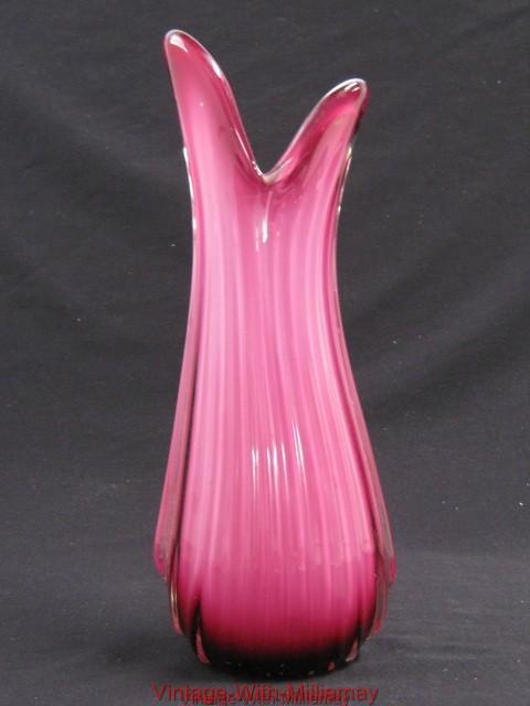 lovely vintage Cranberry & MIlk Glass Art Glass vase
