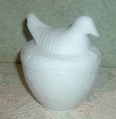 VINTG AVON NESTING CHICKEN MILK GLASS DISH & LID