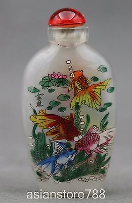 75MM China Chinese Inside-painting Glass Fish Goldfish Lotus Flowr Snuff Bottle