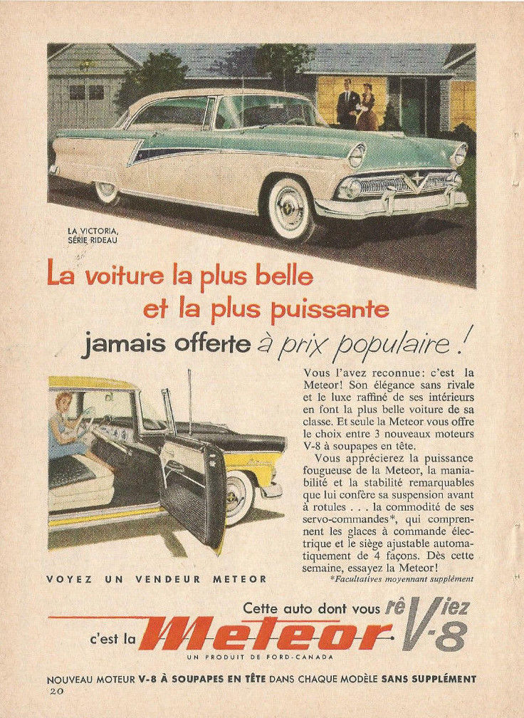 Title (ebay affiliate link): 1955 METEOR VICTORIA RIDEAU AUTOMOBILE ORIGINAL ERA AD IN FRENCH