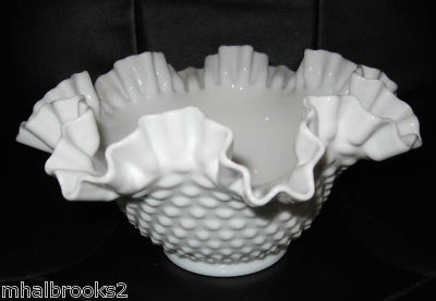 VINTAGE HOBNAIL MILKGLASS FENTON BRIDES BASKET BOWL
