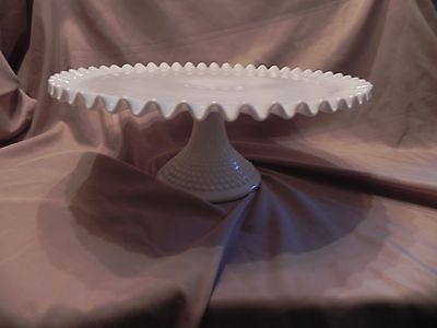 Title (ebay affiliate link): Fenton White Milk Glass Hobnail Pedestal Cake Plate/Stand-Ruffled Edge