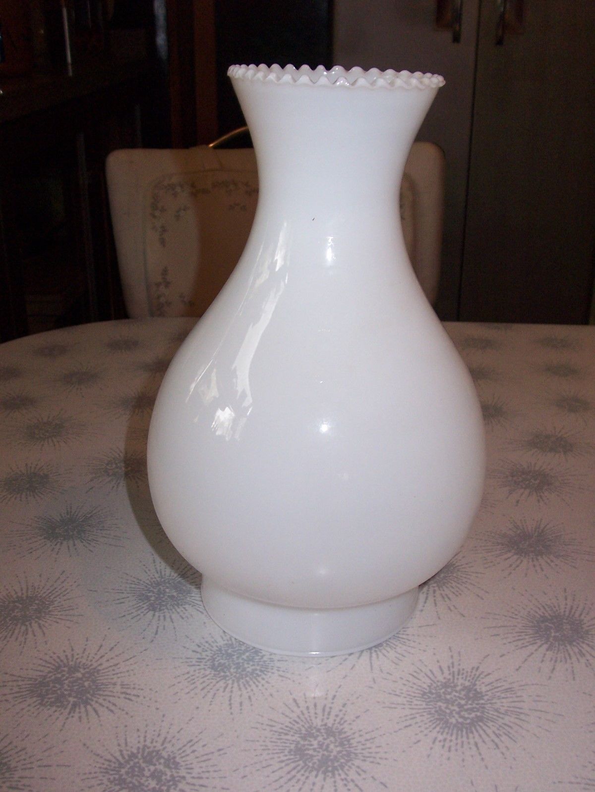 Title (ebay affiliate link): VINTAGE MILK GLASS HURRICANE LAMP SHADE~GLOBE~RARE 4" FITTER~PIECRUST TOP EDGE