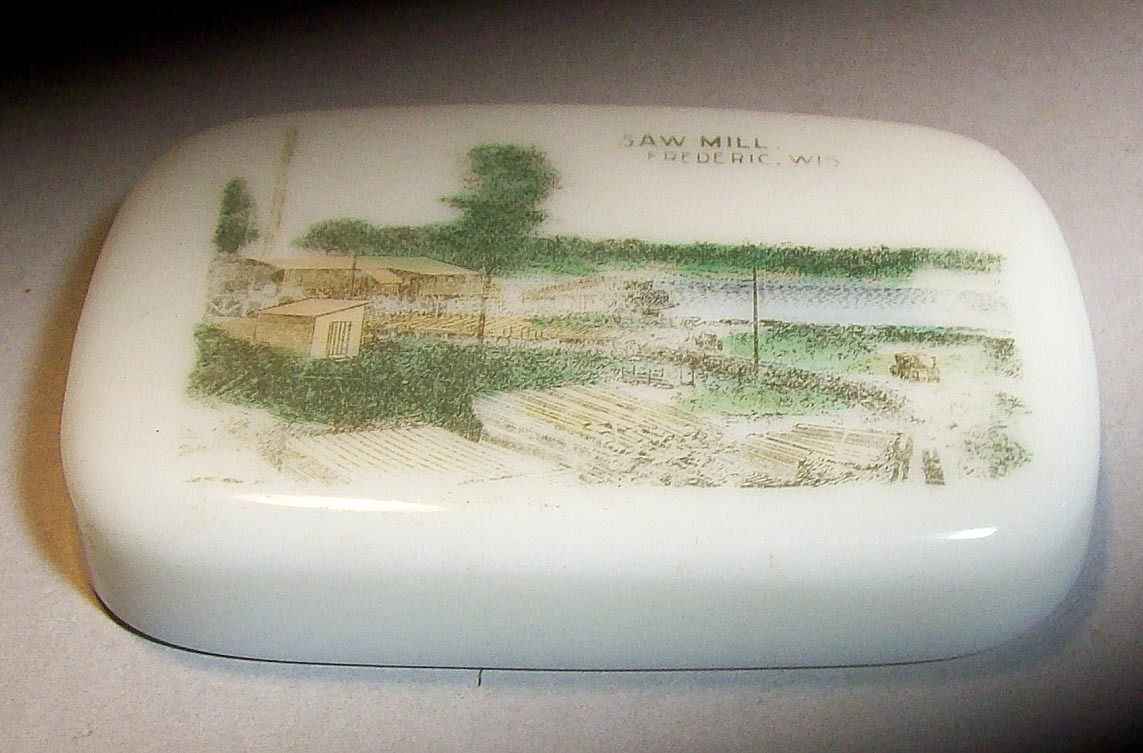 Antique Milk Glass Paperweight, Saw Mill, Frederic, Wisconsin