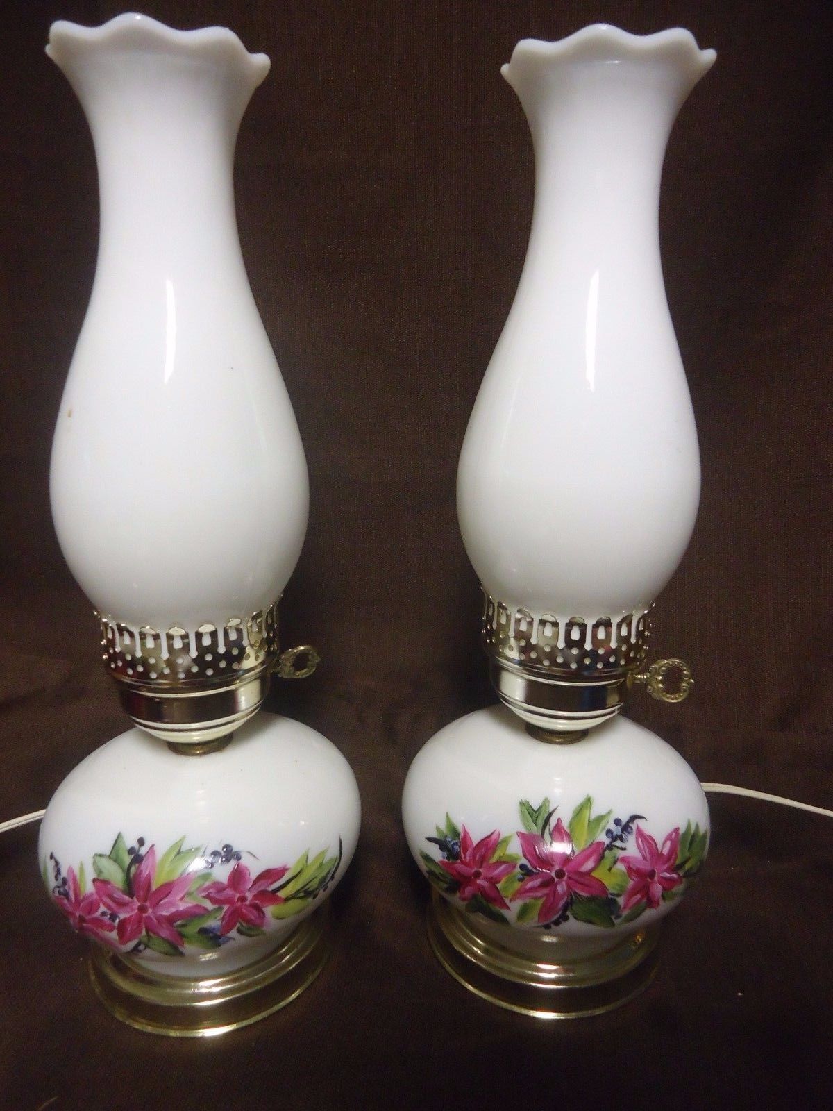 Title (ebay affiliate link): 2 Vintage Electric Hurricane Globe Lamps Hob Nail Milk Glass Gone w Wind Style