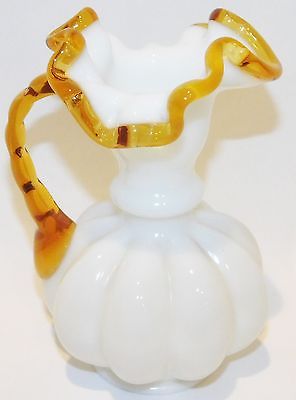 Vintage 1943-44 FENTON Milk Glass GOLD CREST RUFFLED RIM Melon Shape PITCHER~JUG