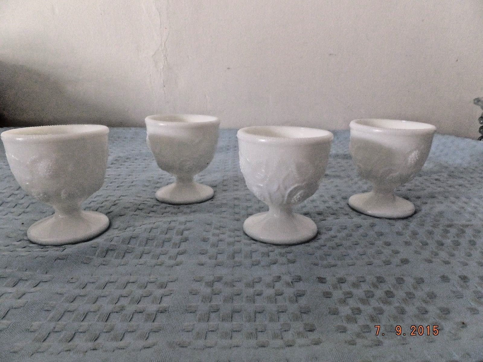 Milk Glass Egg Cups, Set of Four Berry Pattern