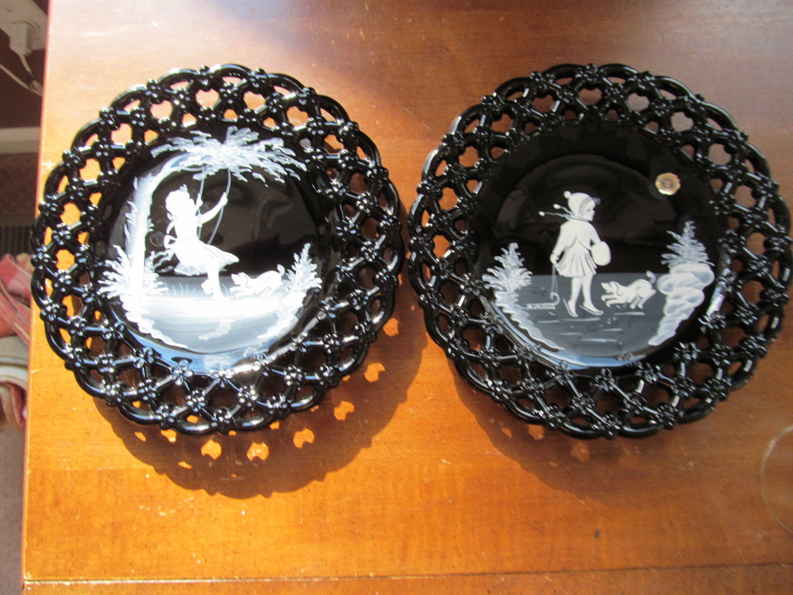 Title (ebay affiliate link): 2 - Vintage Westmoreland Black Milk Glass Plates Mary Gregory Style Lattice Edge