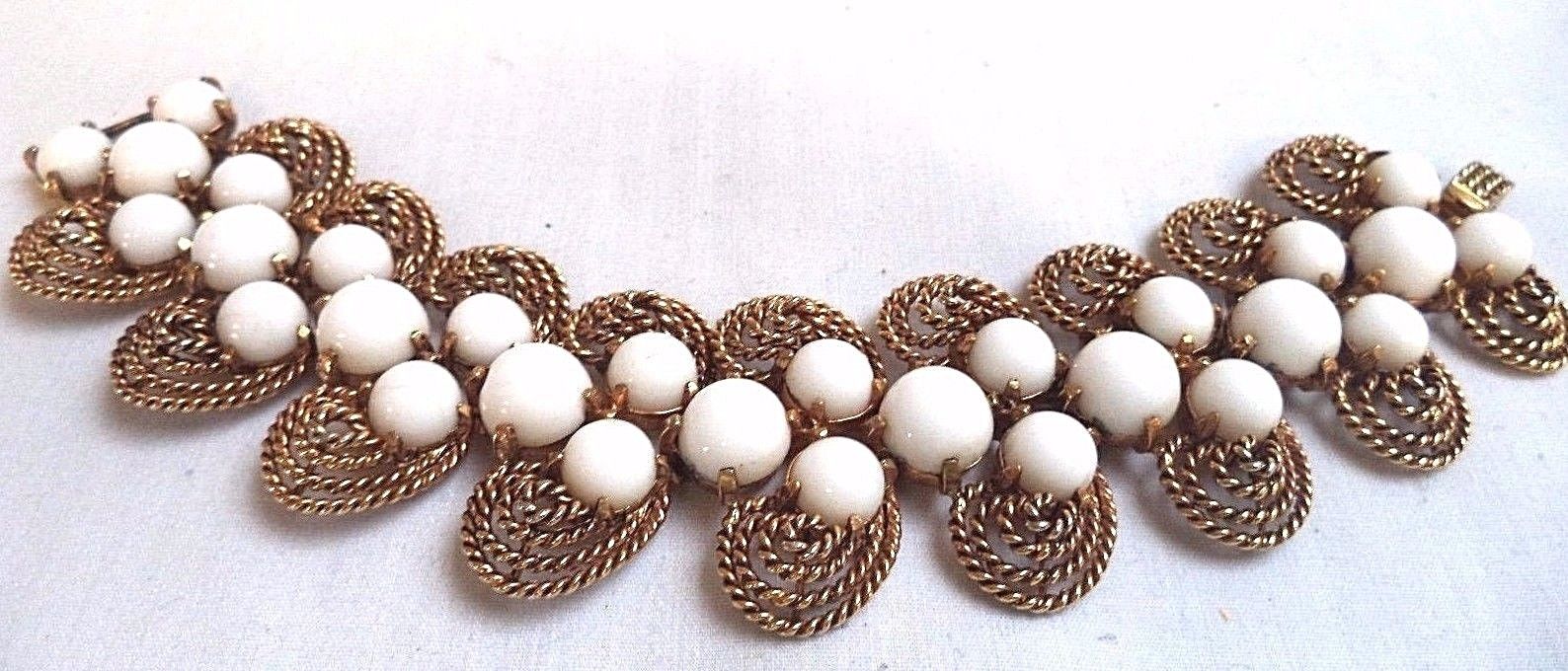 Title (ebay affiliate link): RARE STUNNING VINTAGE ESTATE UNSIGNED HATTIE CARNEGIE MILK GLASS BRACELET! G8225