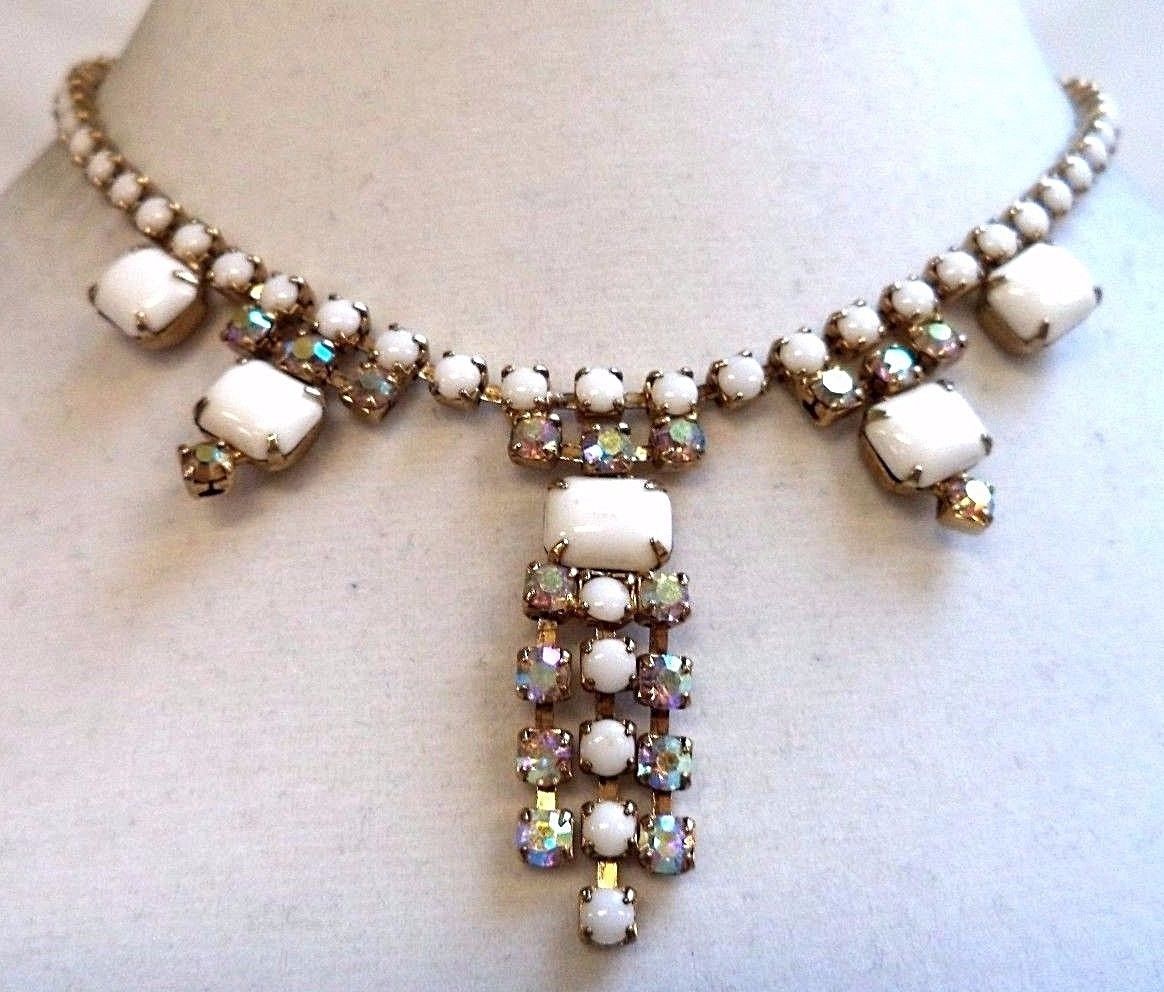 Title (ebay affiliate link): STUNNING VINTAGE ESTATE HIGH END AB RHINESTONE & MILK GLASS NECKLACE!!! G8231