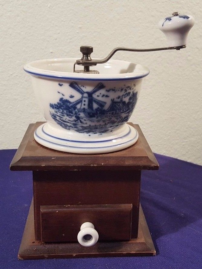 Title (ebay affiliate link): Vintage ROC Milk Glass DUTCH Windmill Coffee or Spice or Pepper Grinder