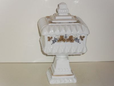 Westmoreland Milk Glass Wedding Bowl Box Black and Gold