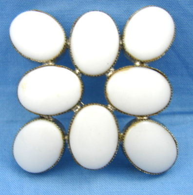 Title (ebay affiliate link): Vintage 8 White Oval Cabachon Milk Glass Pin Elegant