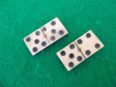 Antique Civil War Era Bone & Ebony Dominoes, X2, Great Camp Item!