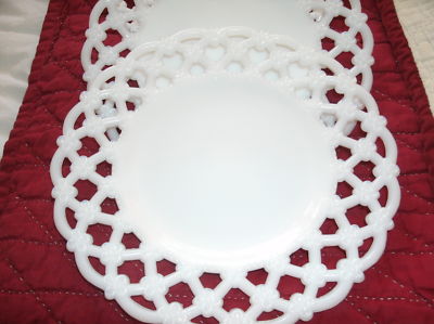 MILK GLASS WESTMORELAND THREE PLATES LATTICE TRIMMED