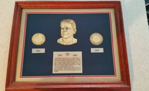 Title (ebay affiliate link): 1964 KENNEDY BRONZE PLAQUE OF JFK 1917-1963 IN FRAME SIGNED BY RAFAEL