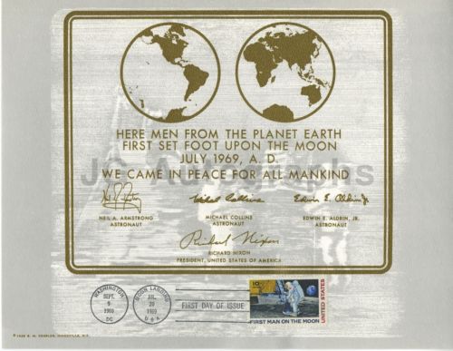 Title (ebay affiliate link): Apollo 11 - First Day Issue Postage Certificate - "Moon Landing" - 1969